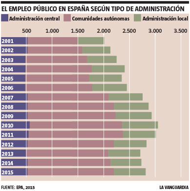 El estudio concluye además que las medidas de recorte no partieron de un plan para “ajustar y redimensionar el empleo por sectores, sino que fueron medidas temporales exclusivamente orientadas a reducir el gasto público”. El martes, el Ministerio de Hacienda y Función Pública informó a los sindicatos de que este año crecerá la oferta de empleo público, con una tasa de reposición superior al 100% de las jubilaciones que se produzcan en educación, sanidad y justicia.
