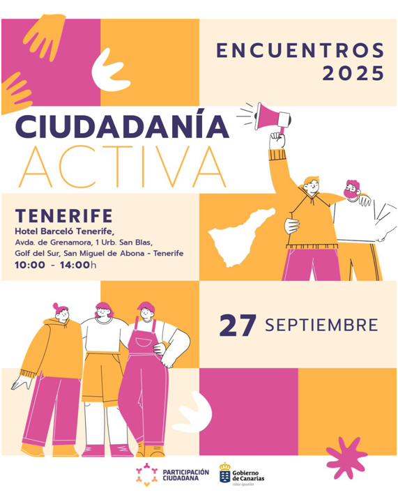 La sesión de este sábado comenzará con la inauguración institucional en la que participarán el viceconsejero de Administraciones y Transparencia, Antonio Llorens; que estará junto a la directora general de Transparencia y Participación Ciudadana, Carmen Delia Alberto; el alcalde de San Miguel de Abona, Arturo González; y la concejala de Participación Ciudadana, Laura Paiz. A continuación, tendrá lugar la charla introductoria ‘Nuevos horizontes para la participación ciudadana’, a cargo de José Luis Rodríguez.