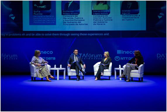 La mesa redonda, que tiene por título ‘La justicia digital en las Comunidades Autónomas. Oficinas de Justicia en los municipios y Tribunales de Instancia’, ha sido moderada por la secretaria general para la Innovación y la Calidad del Servicio Público de Justicia, Sofía Puente, y han participado también el consejero de Hacienda, Justicia y Asuntos Europeos de Asturias, Guillermo Peláez, y la secretaria para la Administración de Justicia de Cataluña, Iolanda Aguilar.