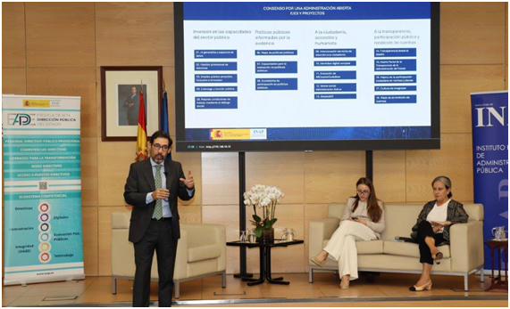 El director del INAP, Manuel Pastor, junto a las subdirectoras de Selección y de Aprendizaje, han presentado a la Red de Escuelas e Institutos y a responsables de Recursos Humanos de la Administración General del Estado la propuesta del modelo de escuelas para el acceso al empleo público, todo ello en el marco de la estrategia “Consenso por una Administración Abierta”.