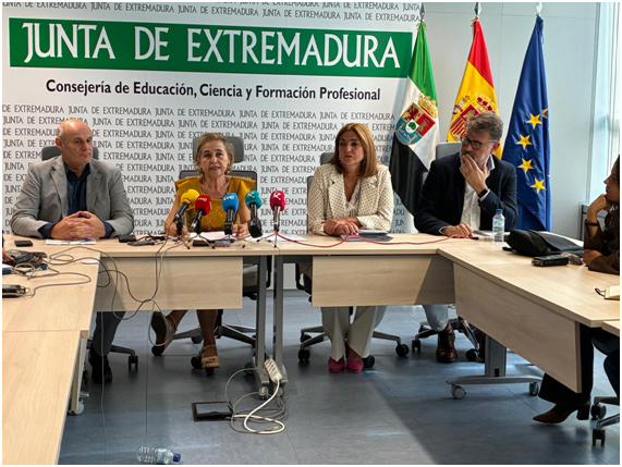 La Administración ha trasladado la nueva propuesta a los sindicatos de la educación en la reunión, celebrada en la Consejería, a la que han asistido las centrales sindicales representativas en el sector educativo en Extremadura, PIDE, CSIF, ANPE, CCOO y UGT, y que también incluye 280 euros más al año desde enero de 2027, "más el compromiso de volver a analizar la situación en esos momentos de la media nacional, para poder llegar a esa media nacional".