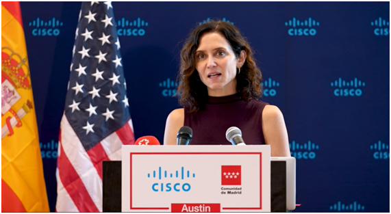 La jefa del Ejecutivo autonómico ha mantenido este encuentro en el marco del viaje institucional que realiza a la capital del estado norteamericano de Texas, con el objetivo de atraer inversión y conocer el funcionamiento de algunas de las compañías líderes mundiales en alta tecnología. “Este convenio va a acelerar la transformación de nuestras redes de una manera mucho más segura”, ha señalado, para añadir que va a permitir llevar toda la tecnología a colegios, hospitales, oficinas, “hacer que todo forme parte de una única red para garantizar esa seguridad y su funcionamiento”.