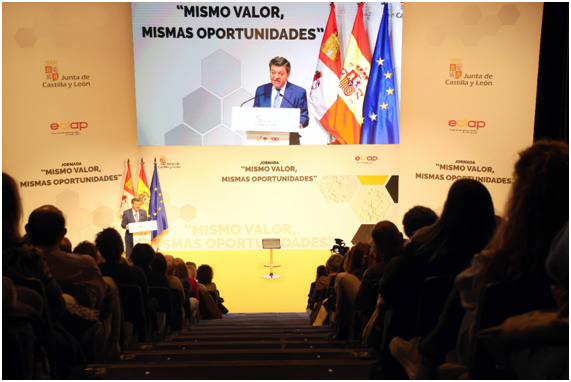 Un ejemplo representativo del compromiso institucional de la Junta de Castilla y León con este principio se da precisamente en el sector del empleo público. Así lo ha puesto de manifiesto el consejero de la Presidencia, Luis Miguel González Gago, durante la apertura de la jornada ‘Mismo valor, mismas oportunidades’, organizada por la Escuela de Administración Pública de Castilla y León (ECLAP), dependiente de esta consejería.