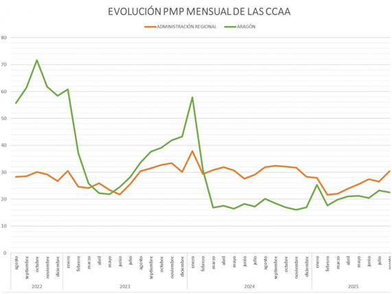 El dato confirma una tendencia sostenida de buena gestión: en los últimos 20 meses, Aragón ha mantenido un promedio de 19,47 días en el pago, situándose de forma constante por debajo de la media nacional y muy lejos del límite legal de 30 días.