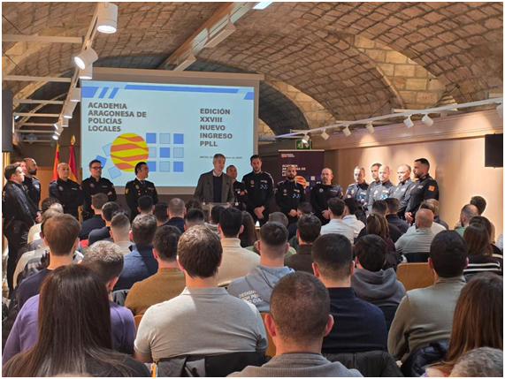 Los alumnos proceden de las policías locales de Teruel, Huesca, Ejea de los Caballeros, Cuarte de Huerva, Jaca, Alagón, Monzón, Tauste, Binéfar, Benasque, Calatayud, Caspe, Tarazona, Utebo, Villanueva de Gállego, Barbastro, Fraga, Sabiñánigo, La Almunia de Doña Godina y Alcañiz. Su itinerario formativo comienza con el área socioprofesional, donde se abordan materias orientadas al bienestar emocional y a la intervención con colectivos vulnerables. Entre ellas figuran el tratamiento del estrés, la atención a la diversidad sexual y de género y las pautas de actuación ante colectivos con necesidades especiales, aspectos que refuerzan la dimensión humana del servicio policial.
