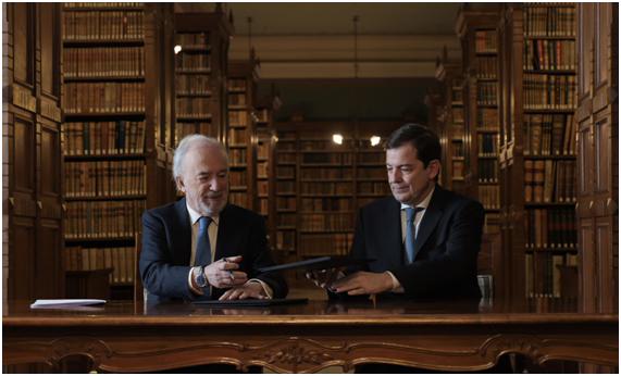 El presidente de la Junta de Castilla y León, Alfonso Fernández Mañueco, y el director de la Real Academia Española (RAE) y presidente de la Asociación de Academias de la Lengua Española (ASALE), Santiago Muñoz Machado, han firmado hoy en Madrid un acuerdo para reforzar el uso del lenguaje claro y accesible en la Administración autonómica, a través de la incorporación del Gobierno autonómico en la Red Panhispánica de Lenguaje Claro y Accesible.
