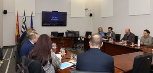 La delegación, encabezada por su presidente, Vasileios Exarchos, y el director de la Escuela Nacional de Administración y Gobierno Local, Dr. Athanasios Raptis, ha compartido durante dos jornadas con los representantes del INAP experiencias sobre formación directiva, innovación pública y transformación digital en las administraciones públicas de España y Grecia.