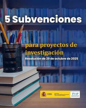 Por Resolución de 29 de octubre de 2025, el Instituto convoca, mediante régimen de concurrencia competitiva, cinco subvenciones para proyectos de investigación dirigidas a equipos cuyos integrantes estén en posesión del título de Doctorado. Su objetivo es dinamizar entre la comunidad científica líneas de estudio de cara a enfrentar los retos humanos y globales, así como fomentar la investigación de la Administración del Estado, la gestión, y las políticas públicas.